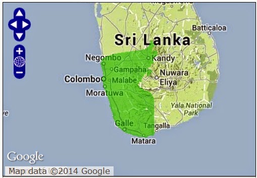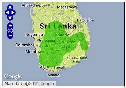 | ශ්රී ලංකා අරංගයා දැකිය හැකි ප්රදේශය Source : birdlife.org |